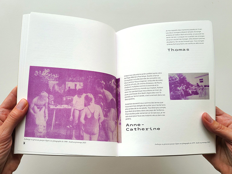 Livre réunissant l’ensemble du projet L’âge d’or inspiré par le souvenir du jardin de ma grand-mère maternelle. Ce travail explore les liens affectifs qui nous unissent aux formes du vivant à travers une démarche artistique participative mêlant récits, cueillettes et expérimentations plastiques.